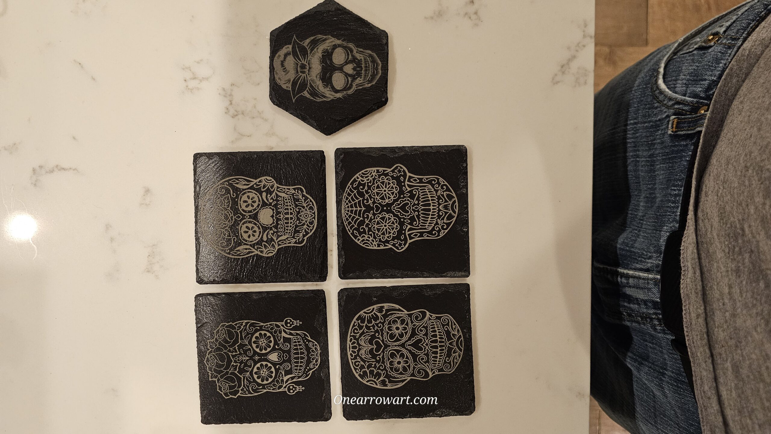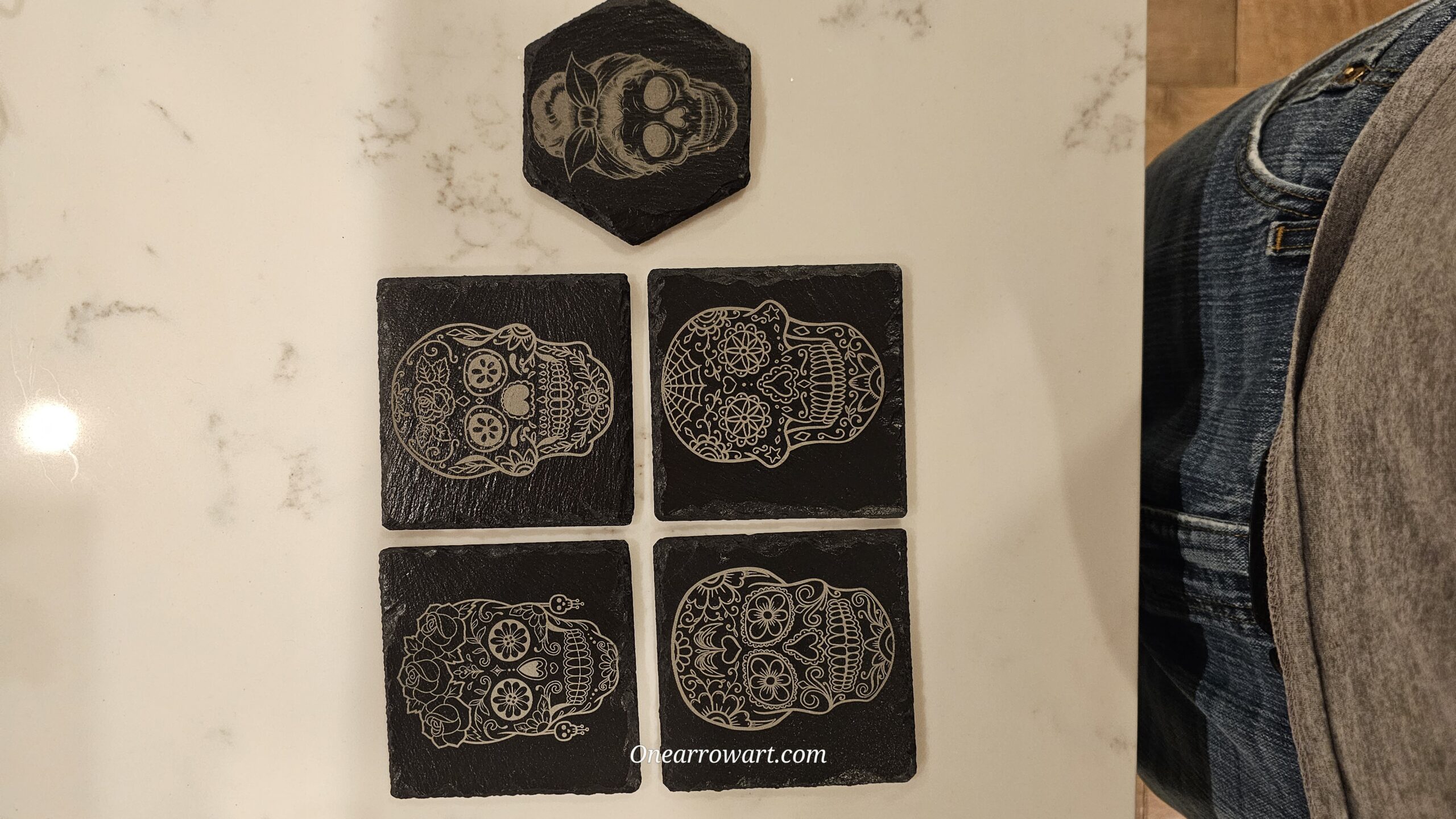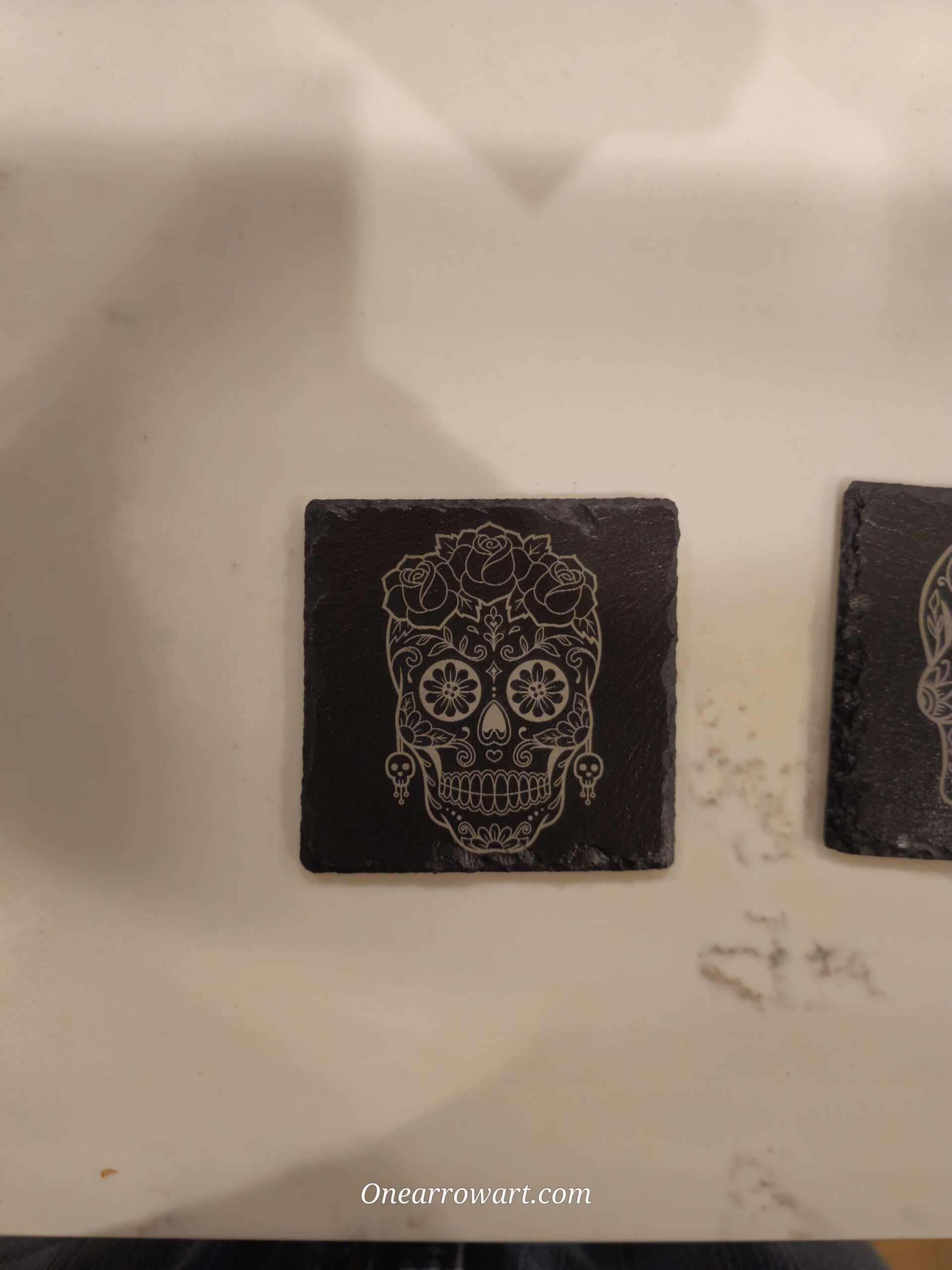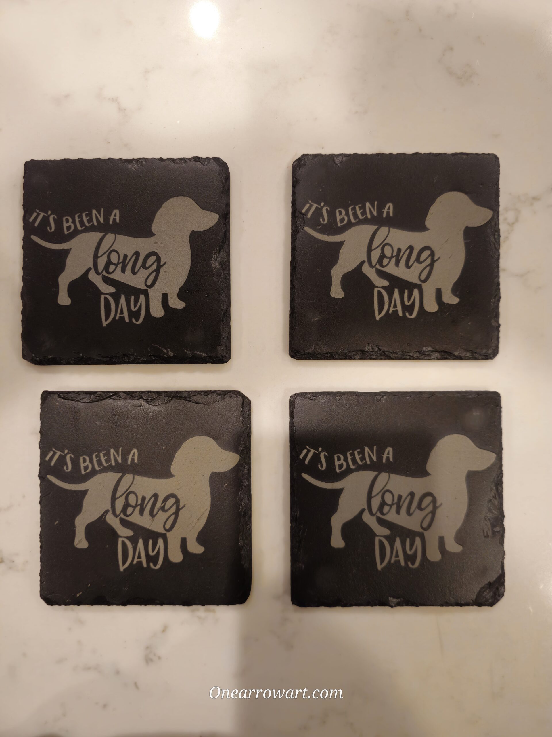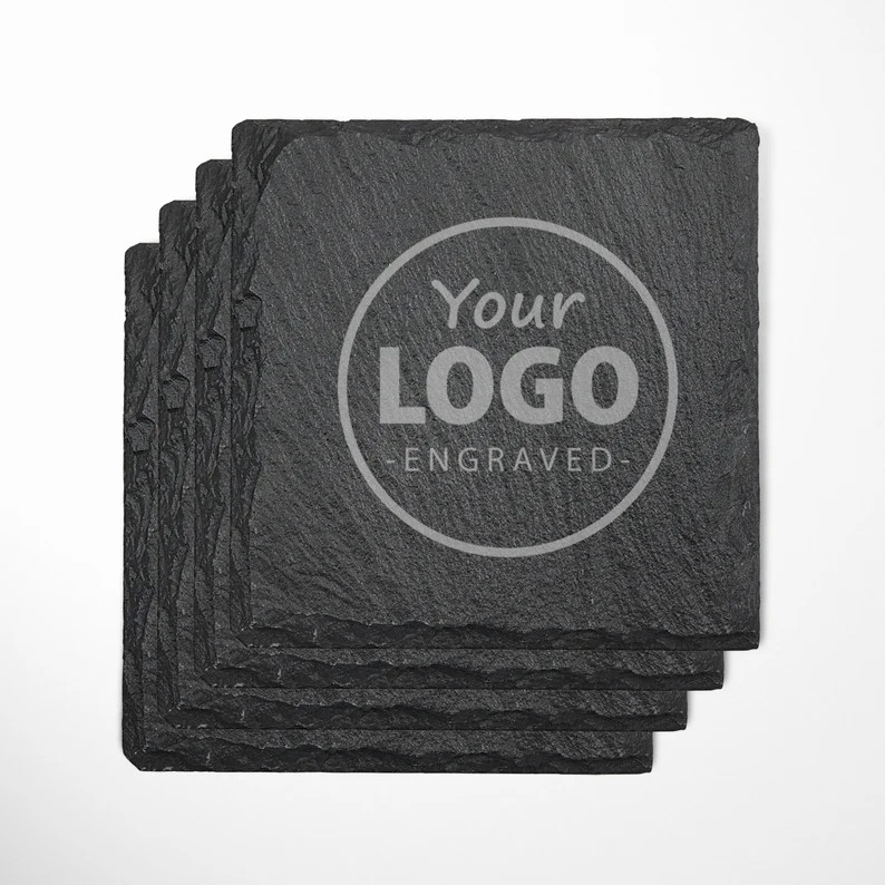 Need your logo on a marketing gift , or want to make a personalized gift for a loved one? Now you can, with a custom engraved black slate square coaster set. Great for company giveaways/souvenirs as well as personal touch gifts.