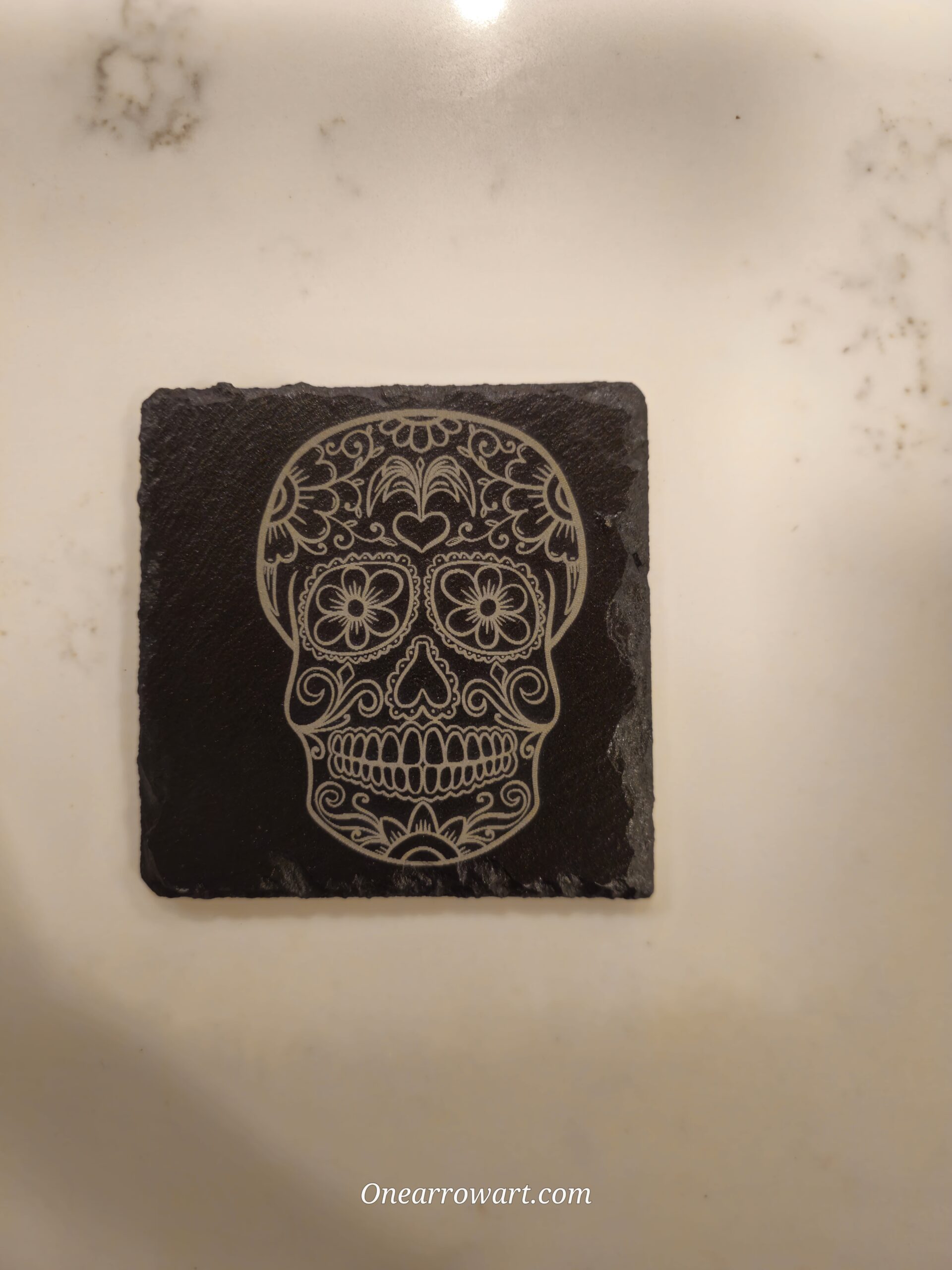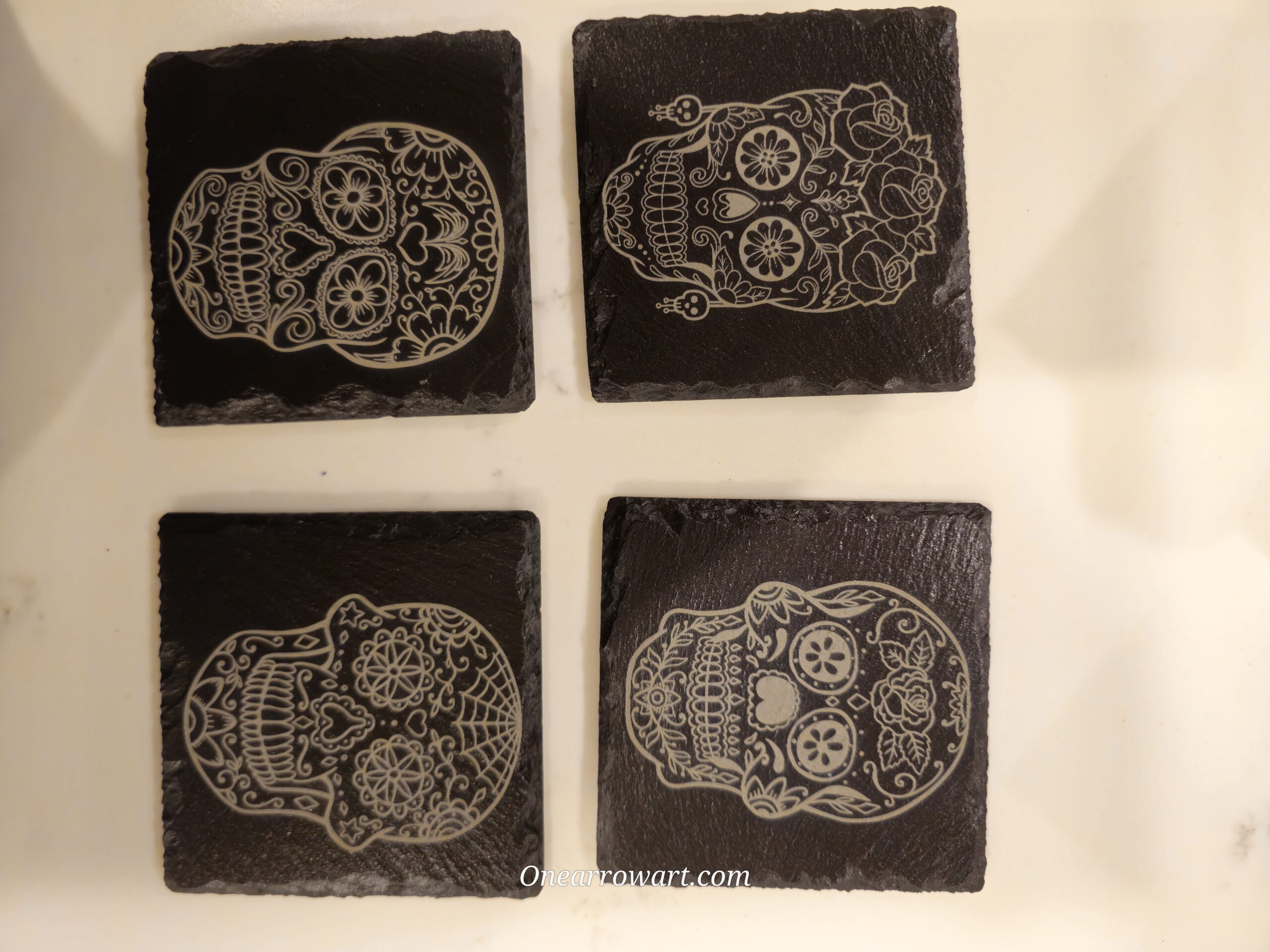 Customizable 4″ x 4″ Black slate stone coasters. set of (4)