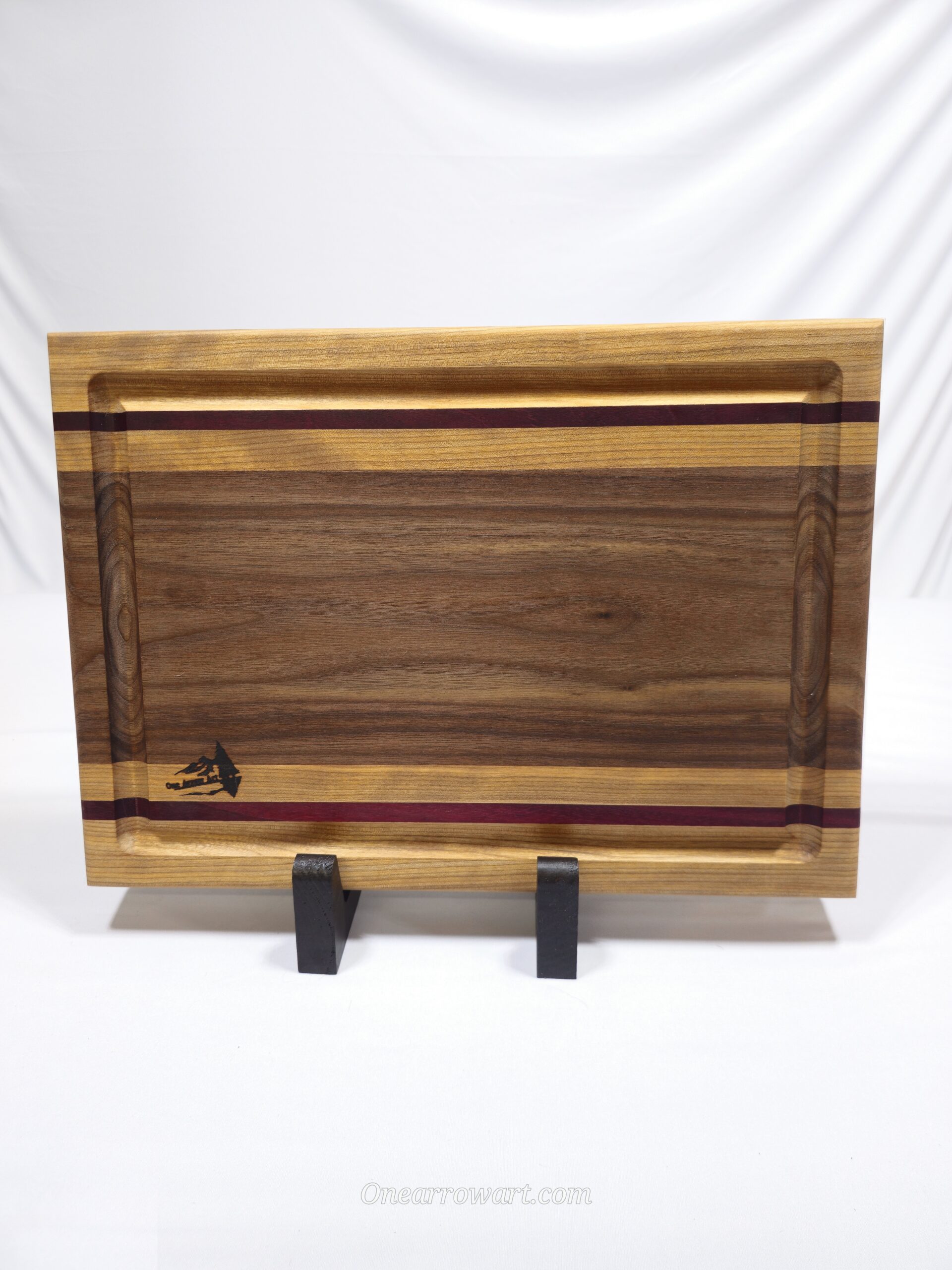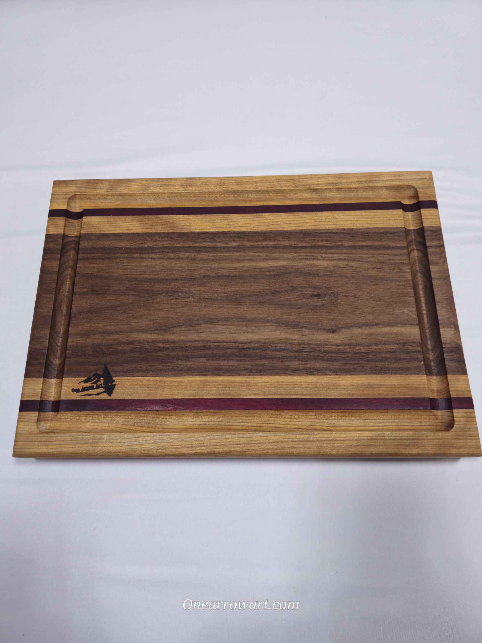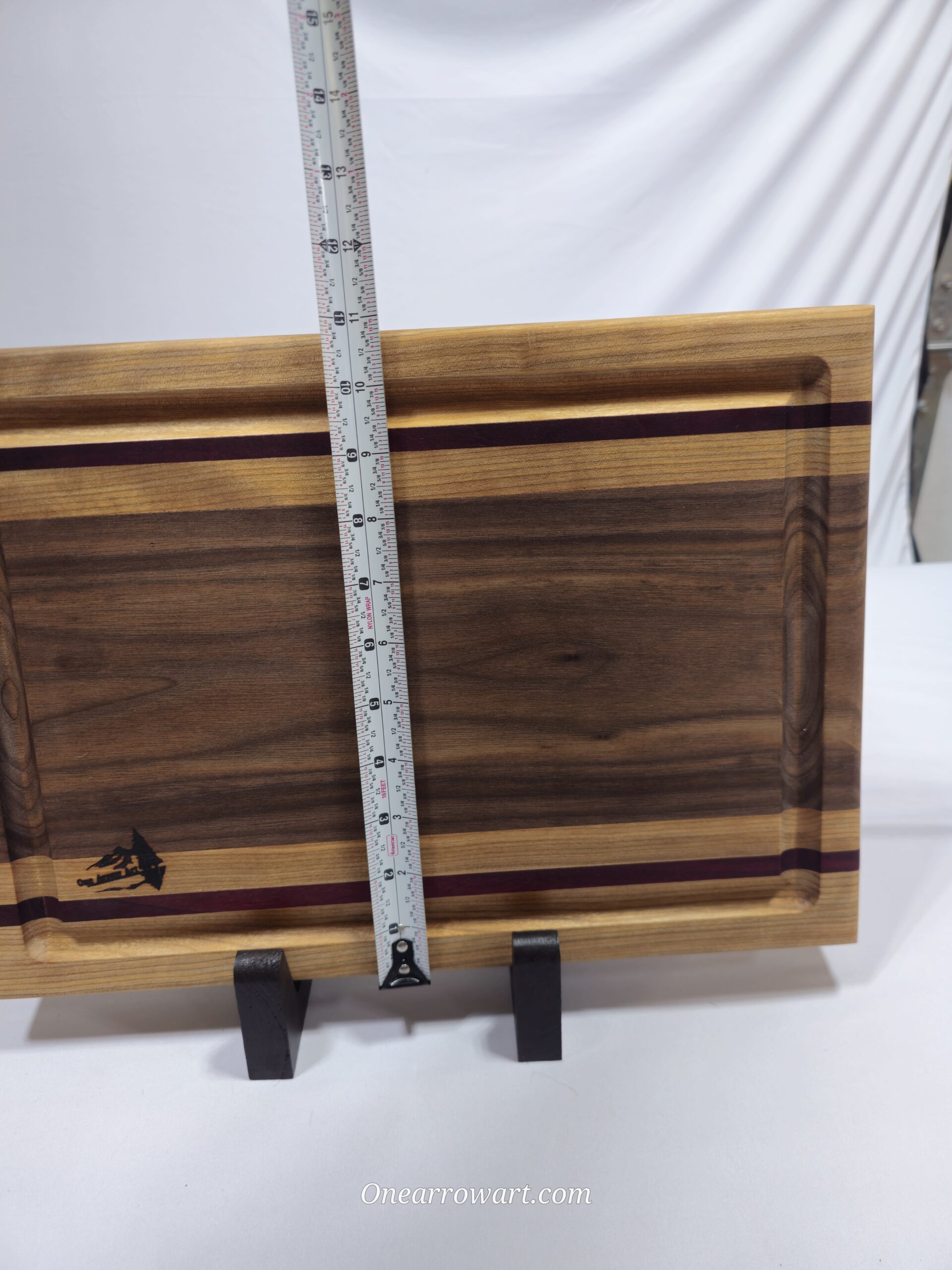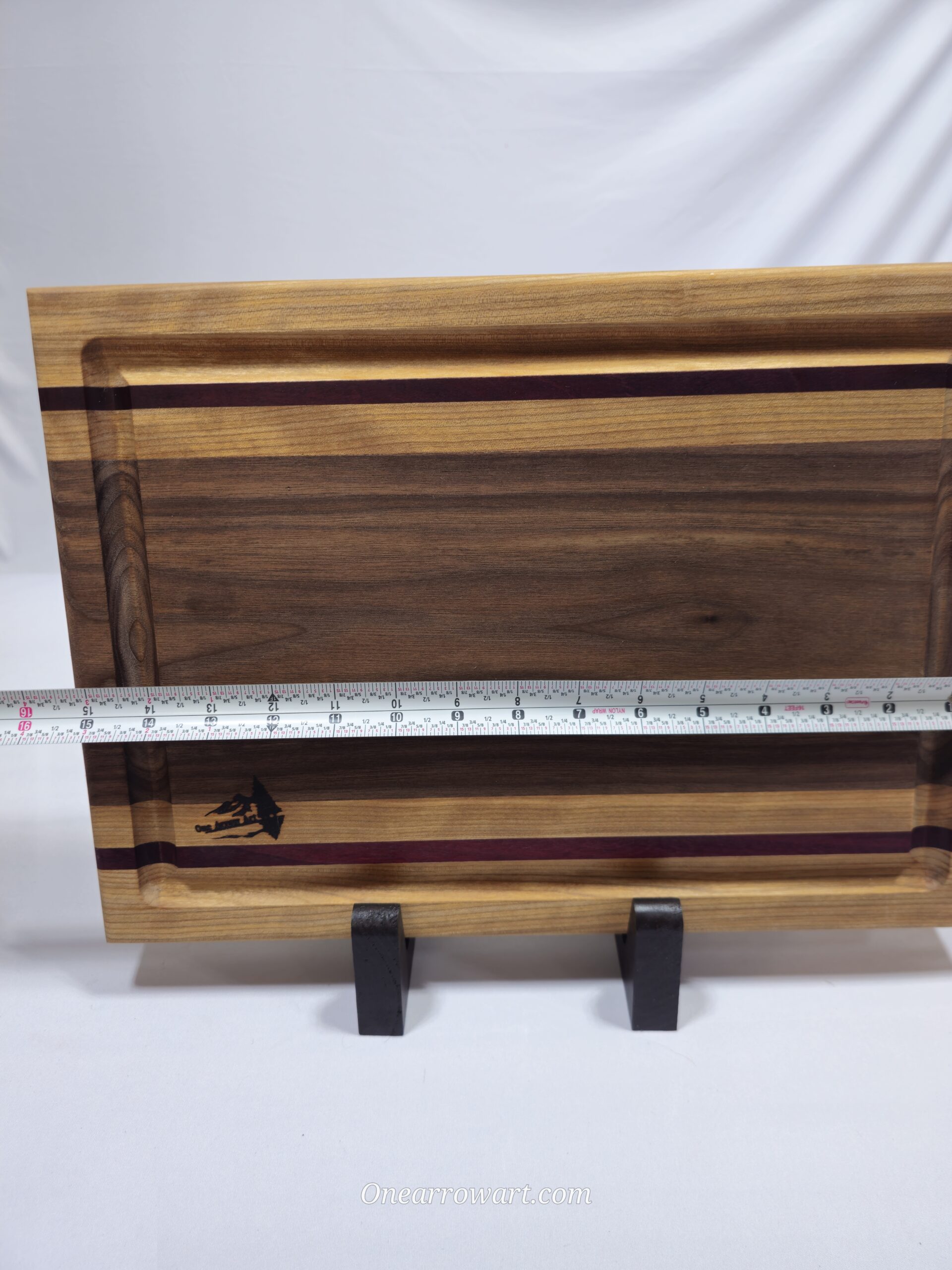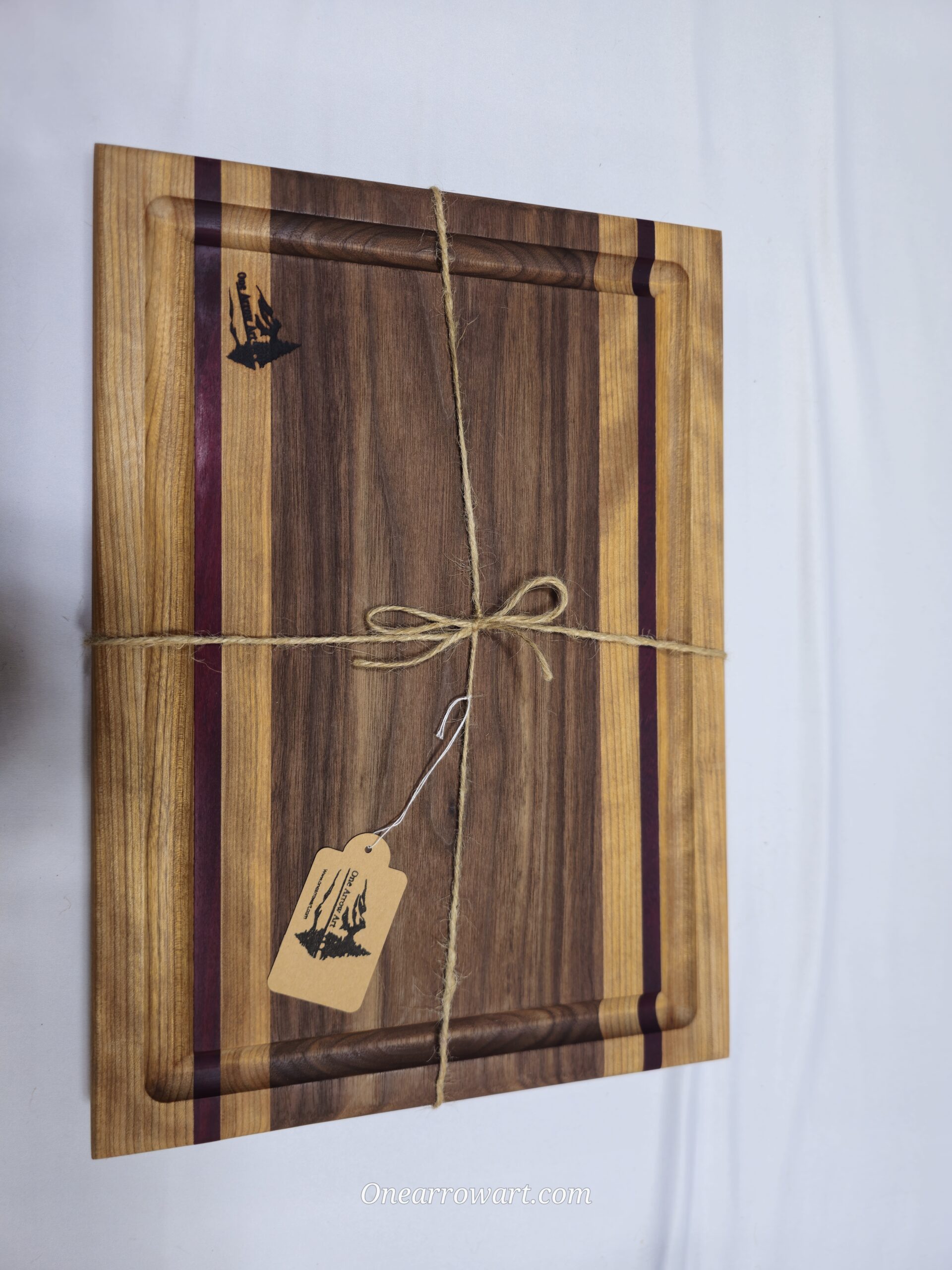 Exotic Hardwood Edge Grain Cutting Board Large Slab Walnut, Purple Heart, And Birch With Juice Groove