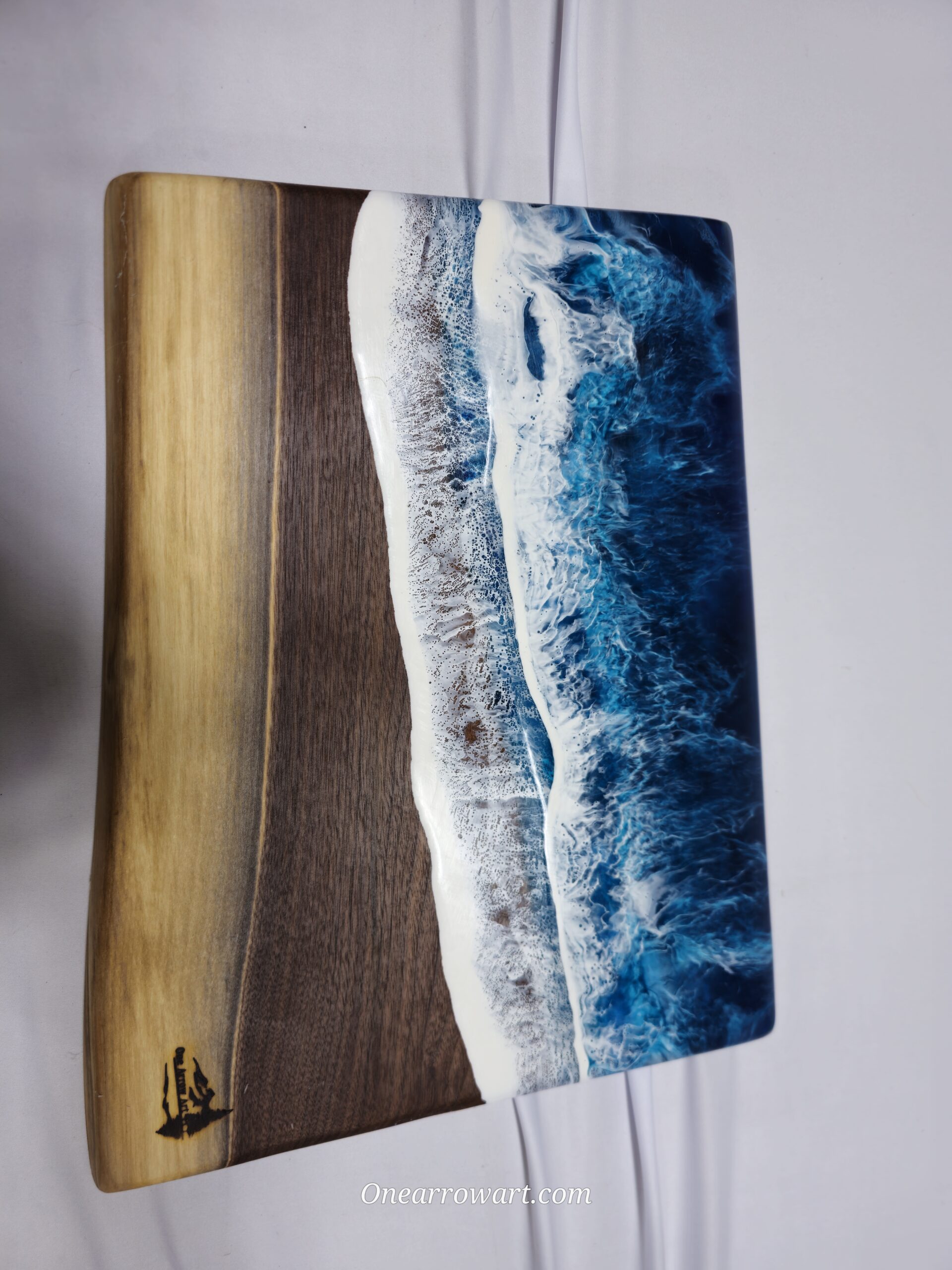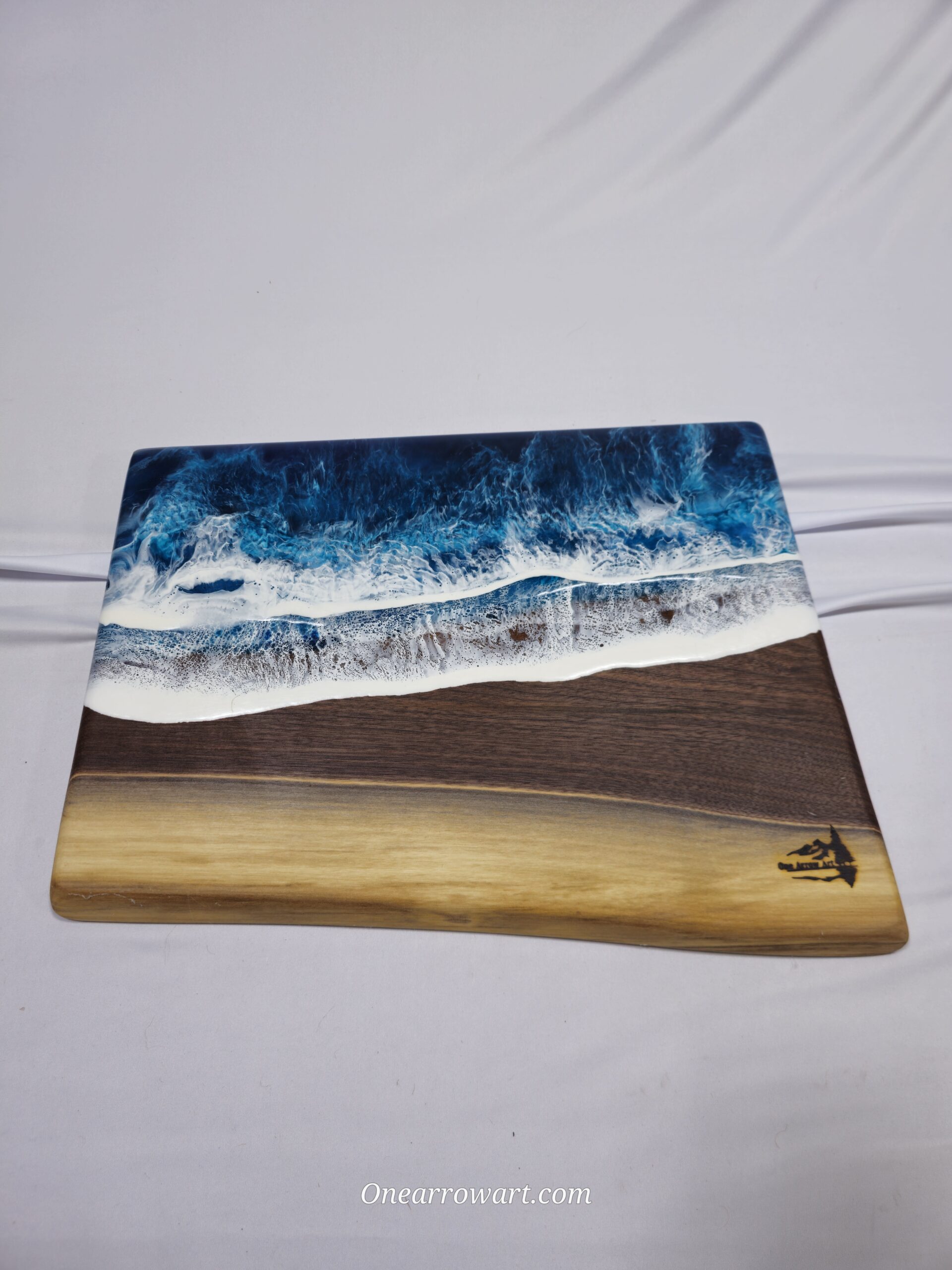 Ocean Resin And Walnut Live Edge Charcuterie Board