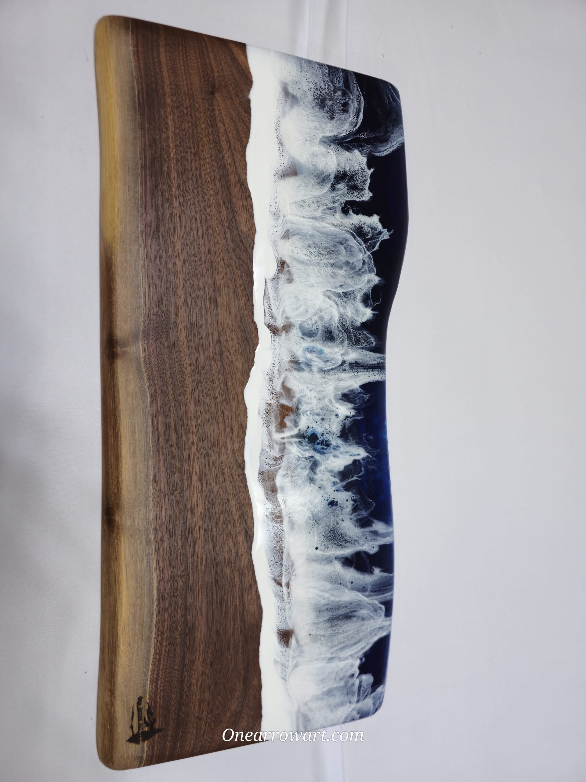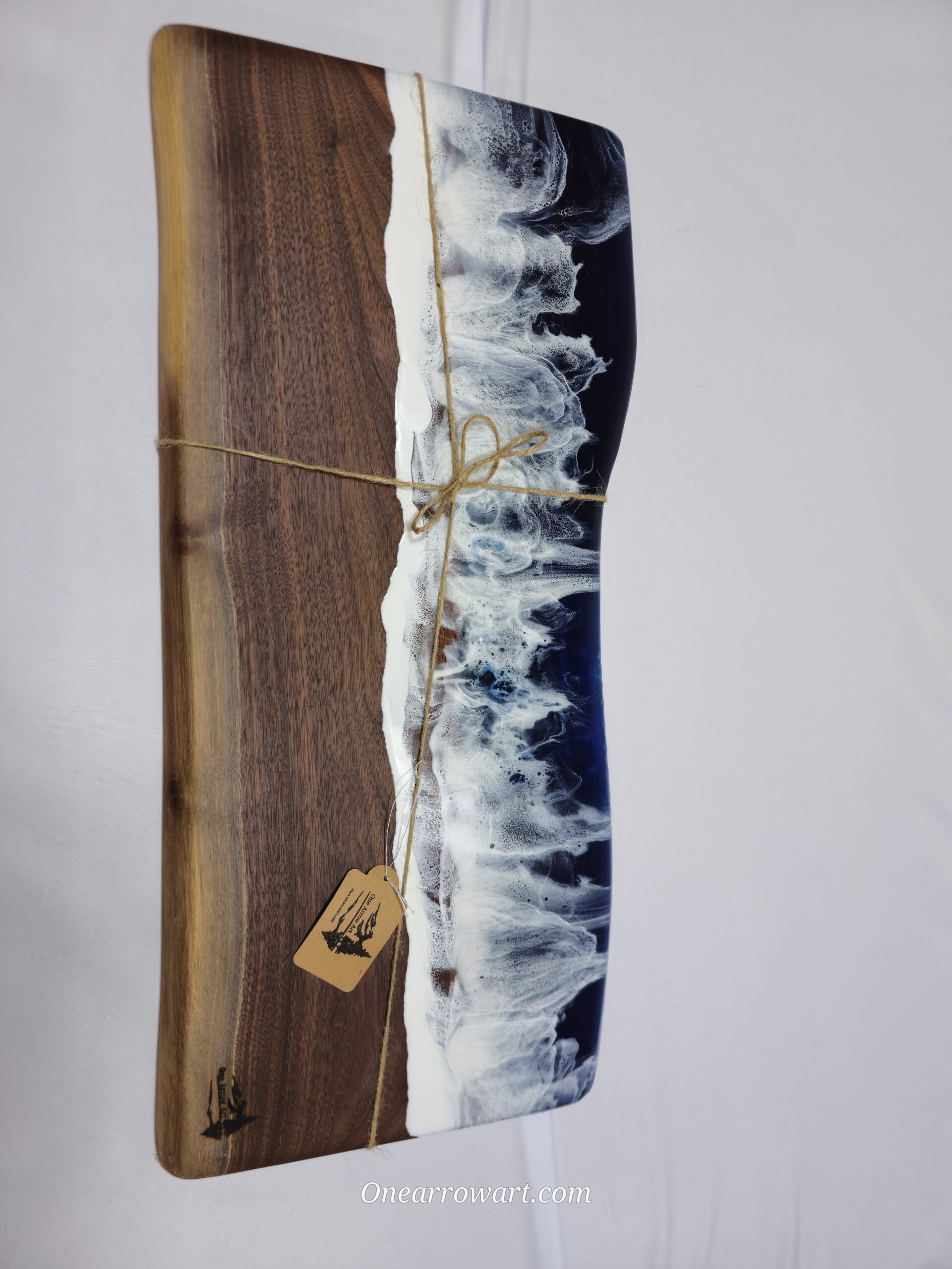 Ocean Resin And Walnut Live Edge Charcuterie Board