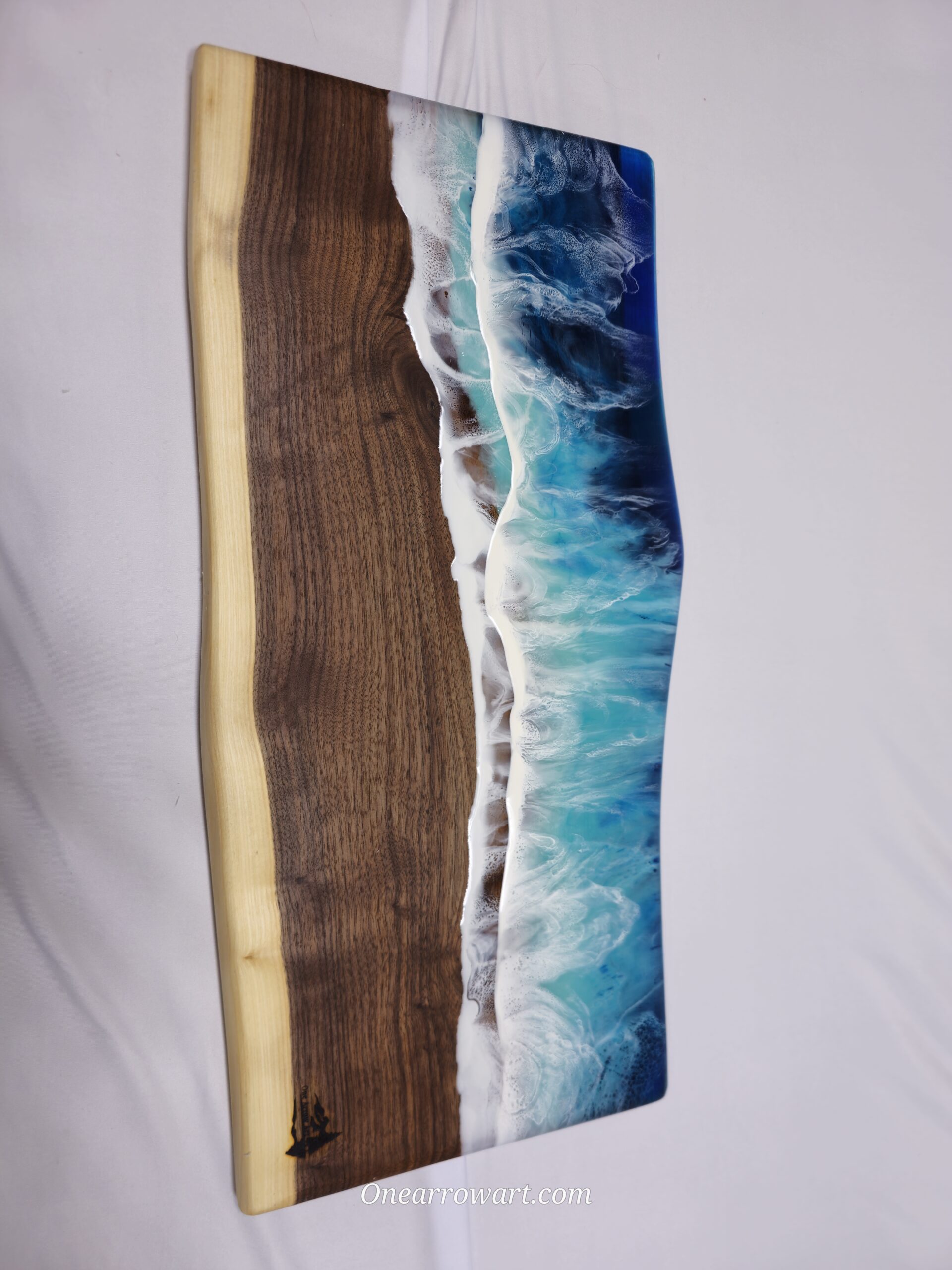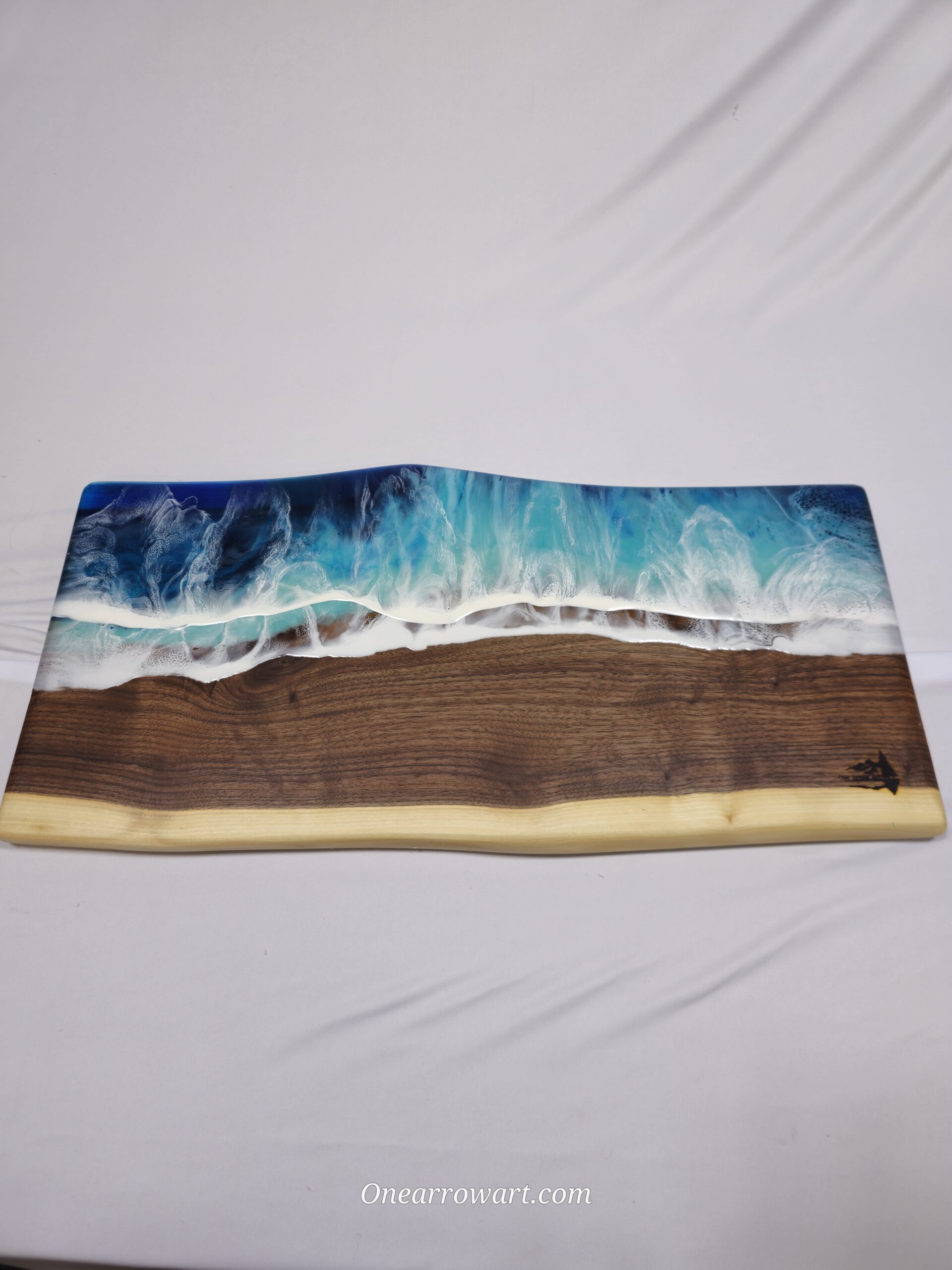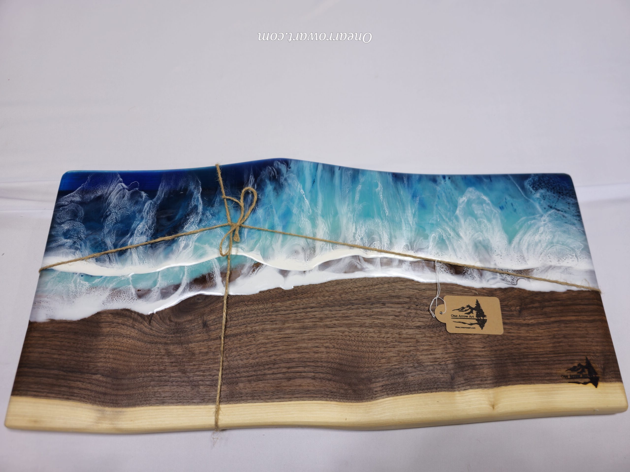 Ocean Resin And Walnut Live Edge Charcuterie Board