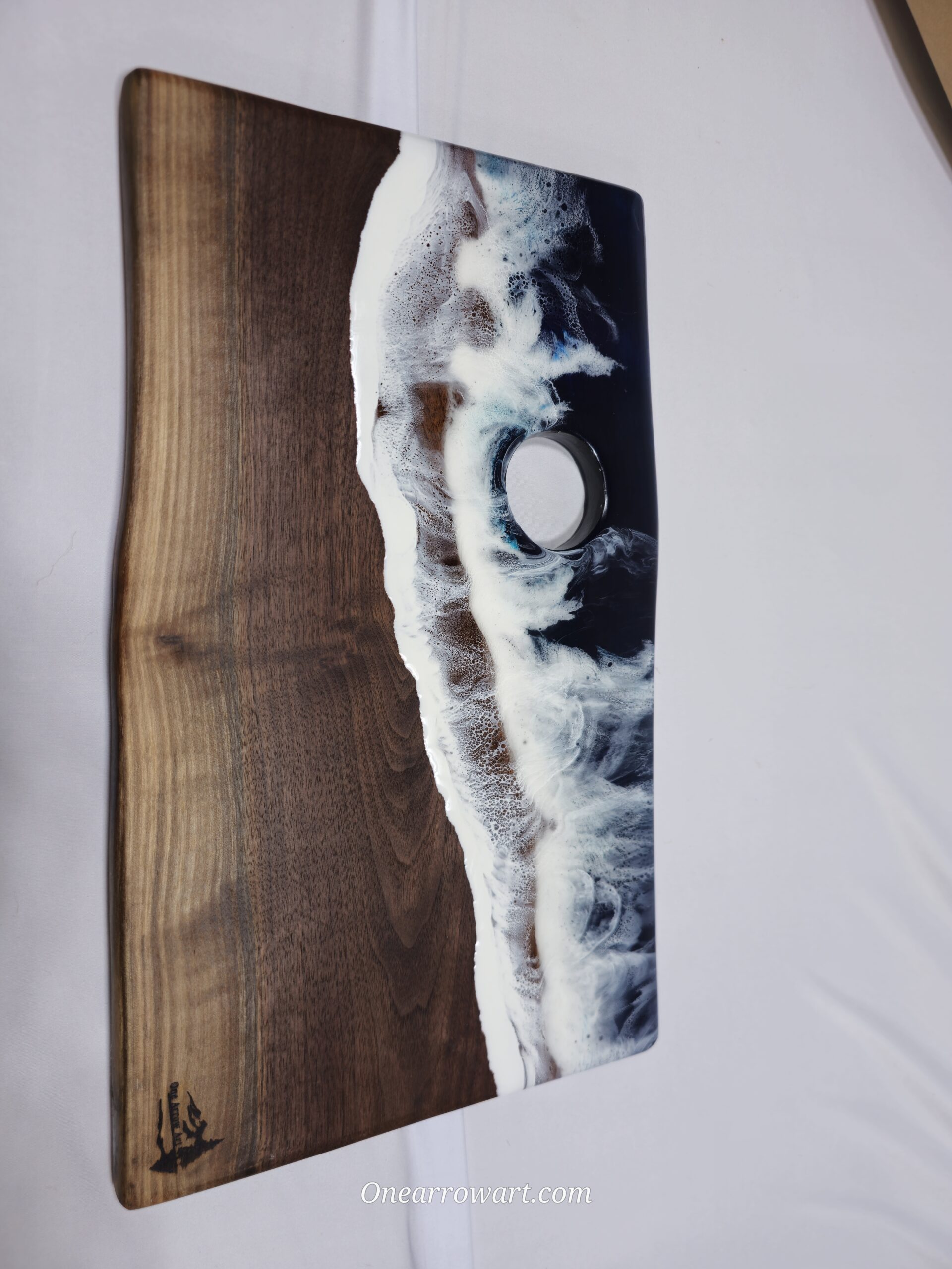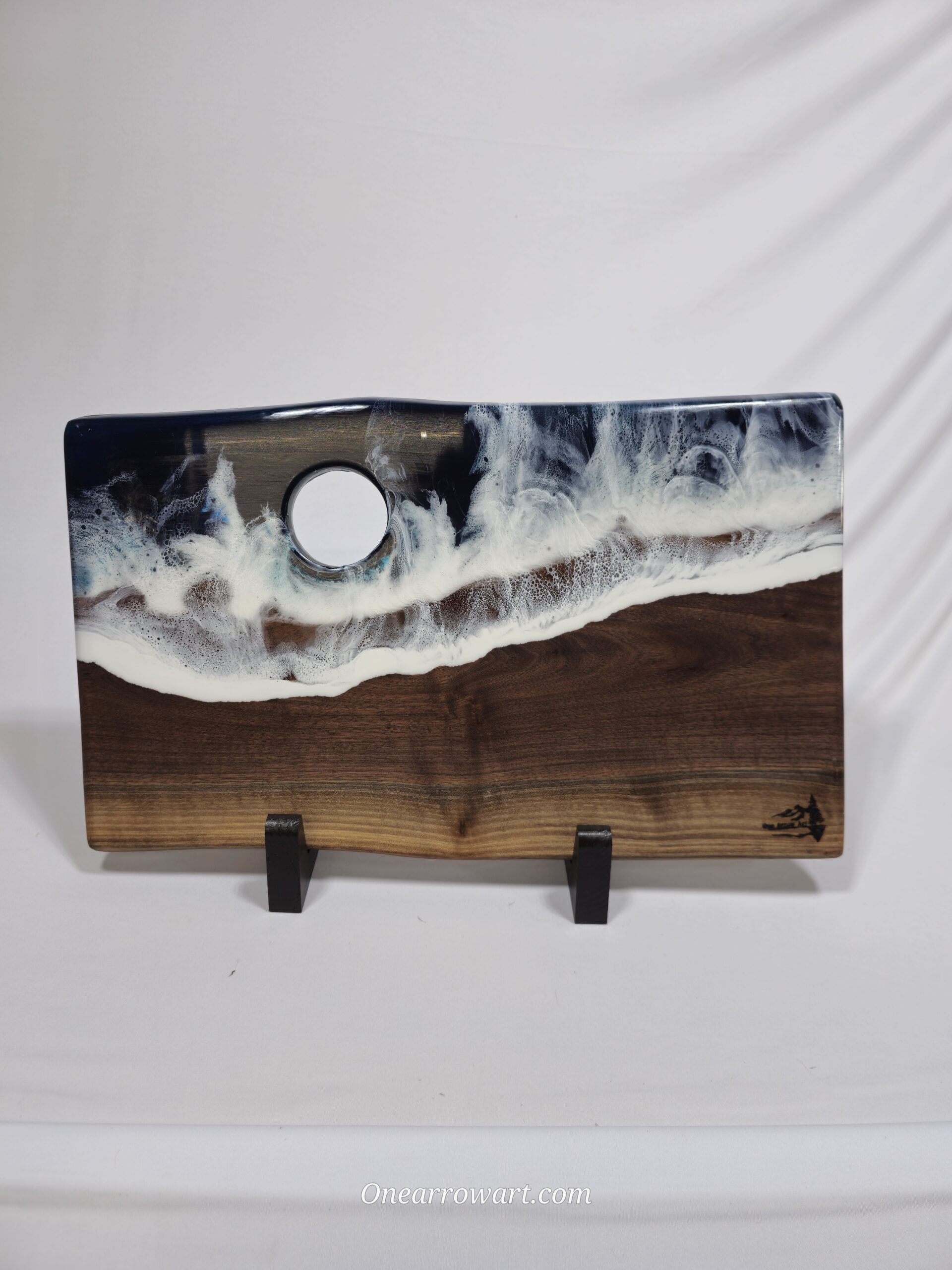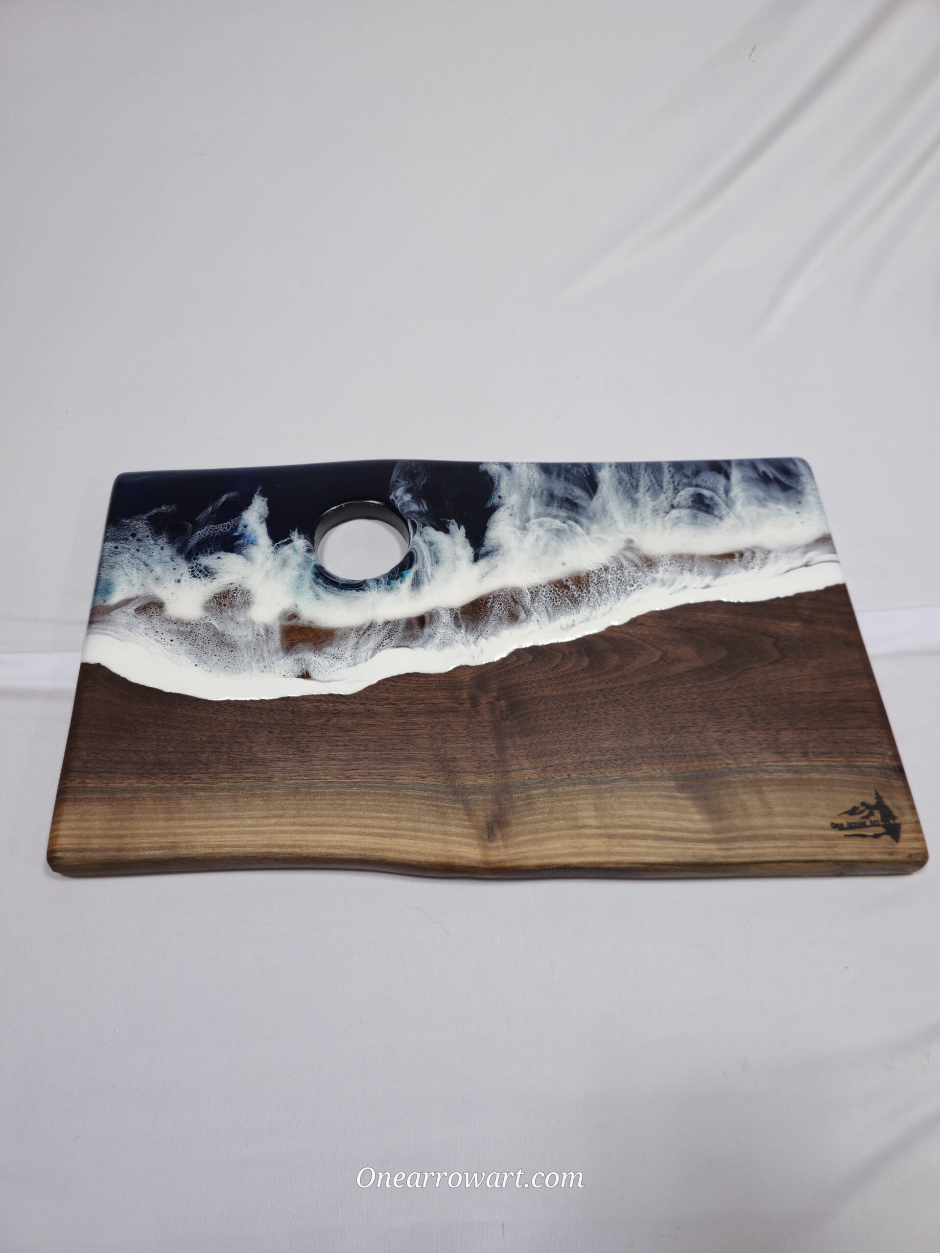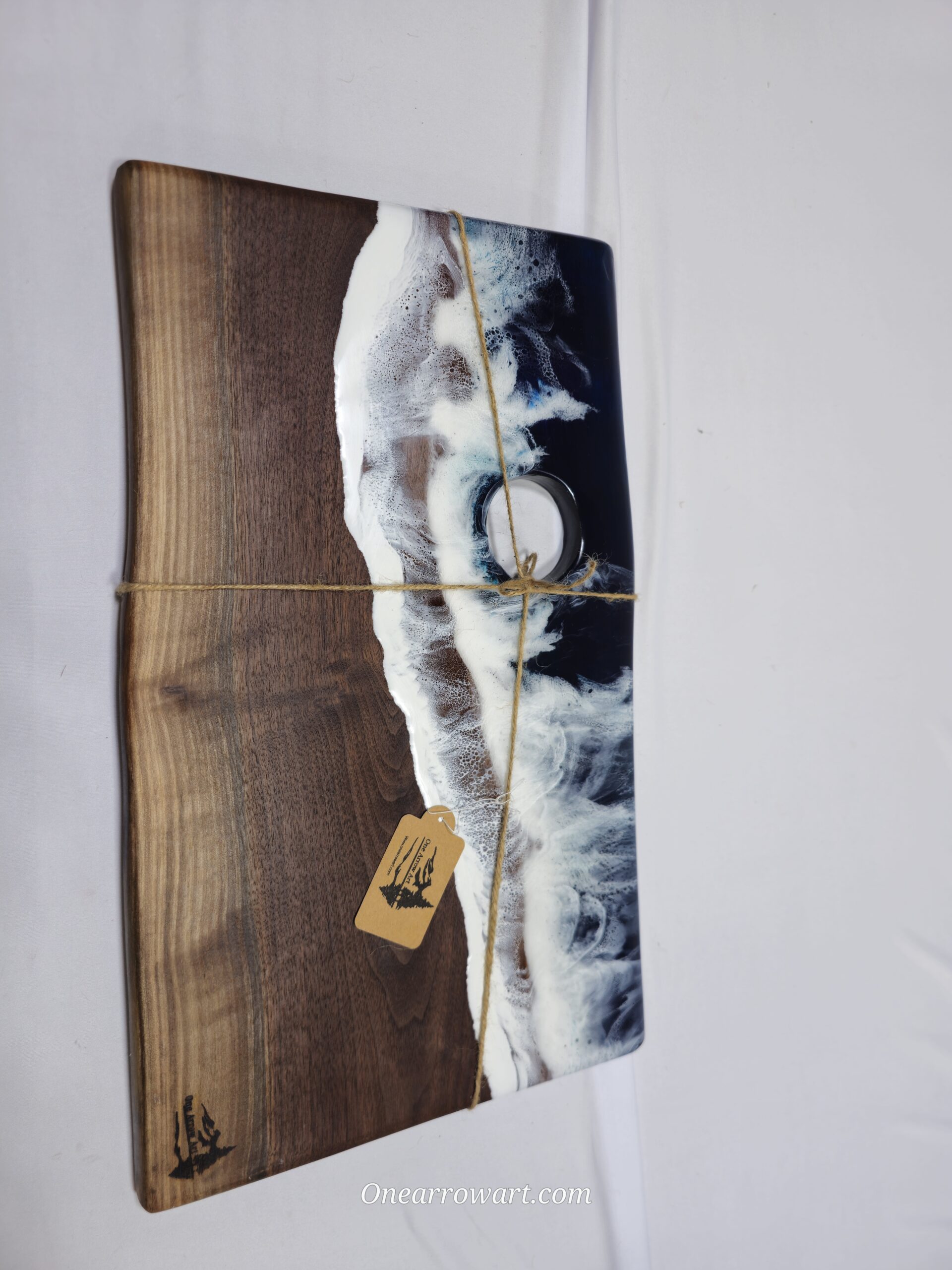 Ocean Resin And Walnut Live Edge Charcuterie Board with Hole/Handle